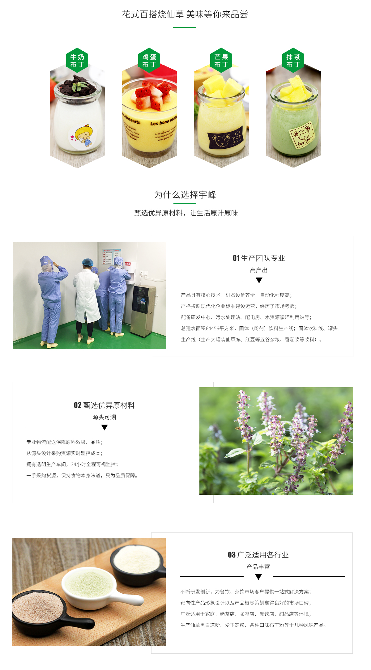 宇峰(滁州)食品有限公司-官方網站-宇峰(滁州)食品有限公司(以下簡稱“滁州公司”),是農業產業化國家重點龍頭企業--廣西宇峰保健食品有限公司的控股公司,成立于2015年1月,注冊資本5000萬元,法人代表王宇峰,是一家“產、銷、貿”為一體的民營企業。 滁州公司占地面積53329平方米(80畝,自購),總建筑面積64456平方米,計劃總投資32000萬元。生產以仙草為核心原料并具有臺灣元素的“宇峰...